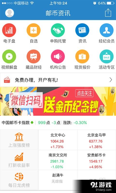 你知道吗?在这个信息爆炸的时代,手机已经成了我们生活中不可或缺的好伙伴。而今天,我要给你介绍一个超级实用的APP——邮币资讯安卓系统。它就像一个贴心的邮币收藏小助手,让你随时随地掌握邮币市场的最新动态。下面就让我带你一起来探索这个神奇的邮币资讯世界吧!